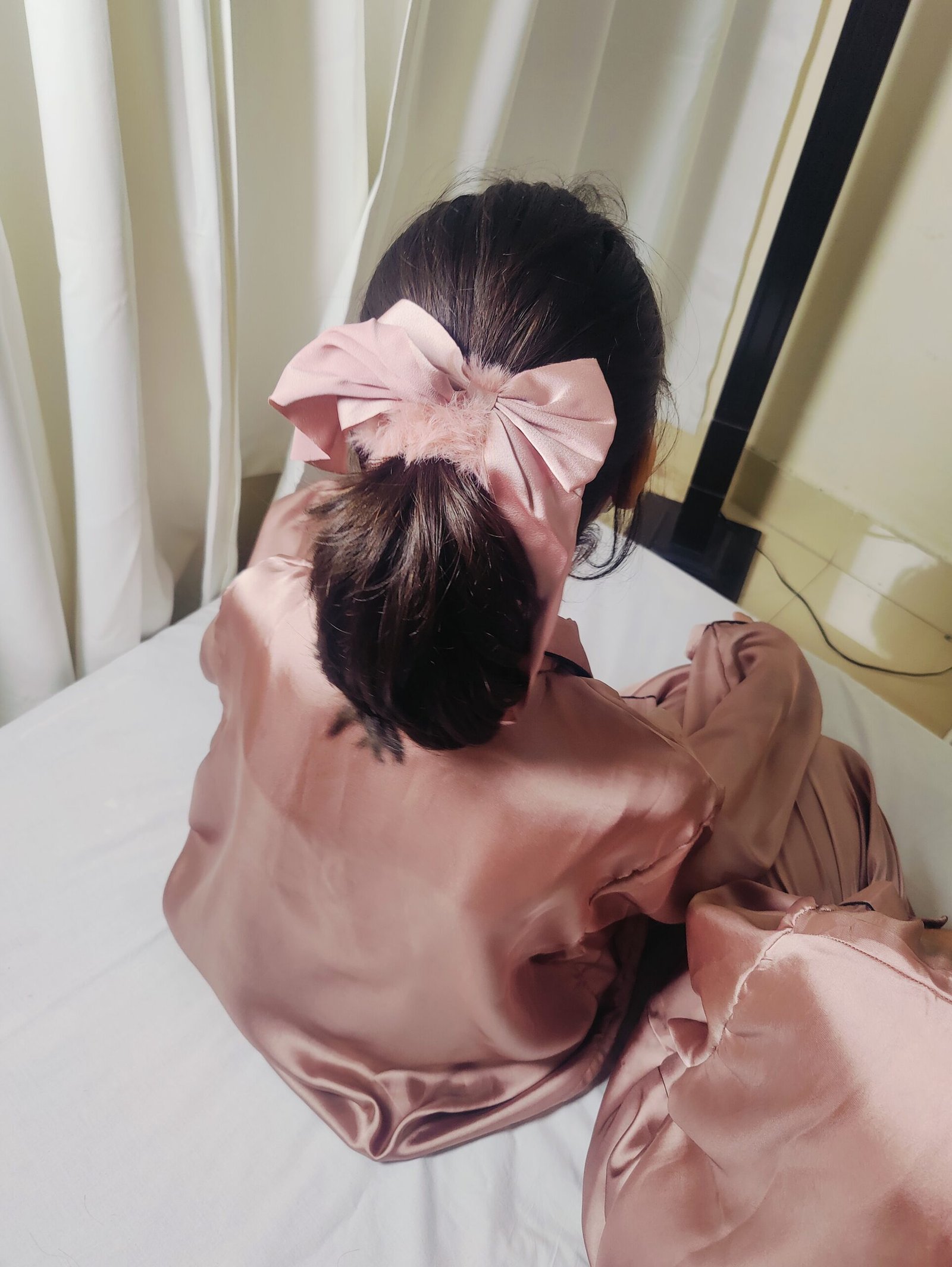 Soft silk hair bow designed for a full, fluffy high ponytail. It adds a cute yet elegant touch, perfect for everyday wear or special occasions. Lightweight, stylish, and comfortable to wear all day.